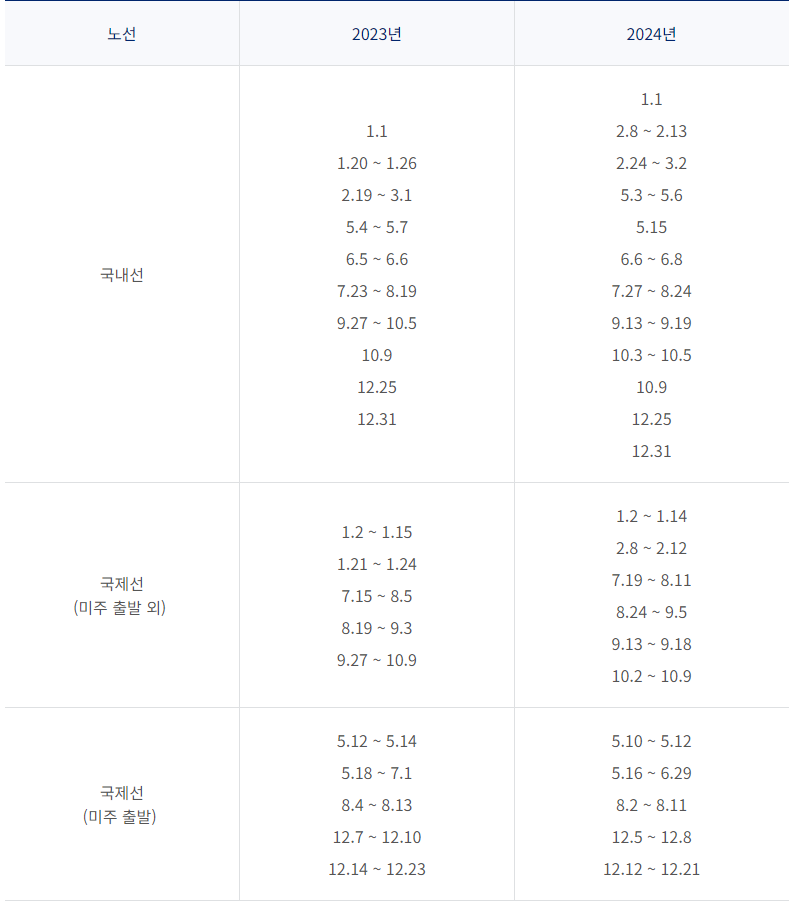 성수기와 가격 차이가 있으니, 원하시는 노선의 성수기 일정을 확인 후 예매하시기 바랍니다.