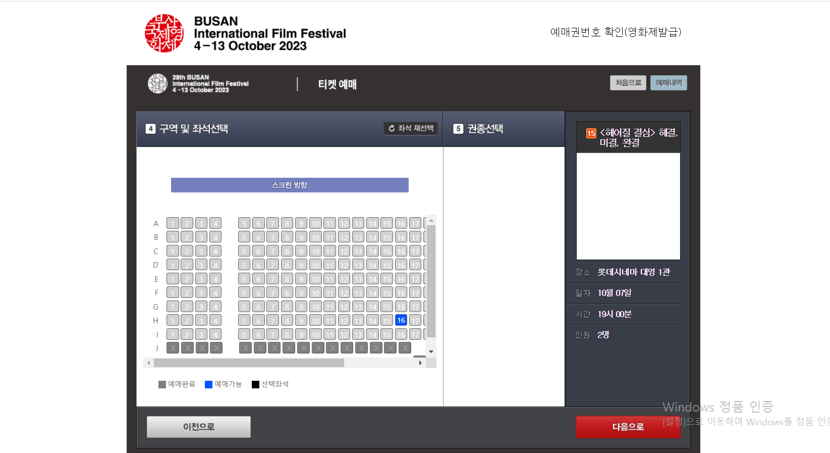 2. 부산 국제영화제 예매 사이트로 이동합니다. 아래와 같은 화면이 나오는데요.