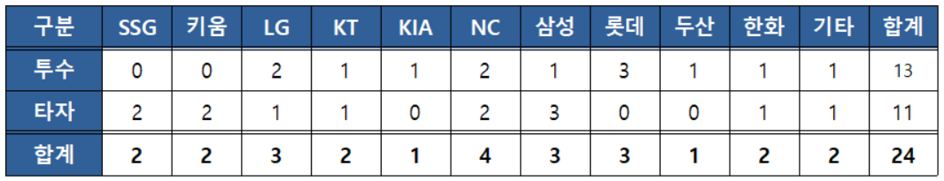 포지션별 명단(총 24명 / 와일드카드 2명)